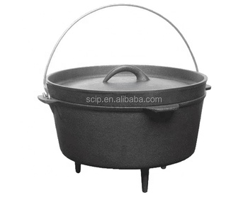Horno Holandés de hierro fundido presazonado, usado para acampar, con tapa